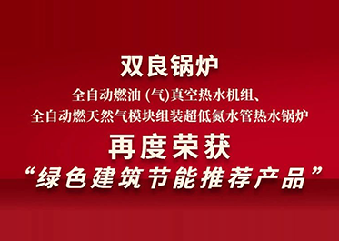 近日,經中國工程建設標準化協會綠色建筑節能產品專家委員會審查、評定,江蘇雙良鍋爐有限公司(簡稱“雙良鍋爐”)研發生產的全自動燃油(氣)真空熱水機組、全自動燃天然氣模塊組裝超低氮水管熱水鍋爐,符合相關要求,再度被授予“綠色建筑節能推薦產品證書”,在工程建設領域推薦使用。